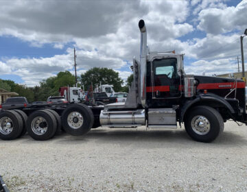 Only 461k Original Miles ~ Pre Emission CAT C15 ~ 500 HP ~ 1850 Torque 18 Speed ~ 2 Speed Auxiliary Transmission ~ 18k Fronts / Steerable 20k Pusher / 46k Rears ~ Dual Steering Gears ~ Full Lockers ~ Full Double Frame ~ Headache Rack ~ All Aluminum Wheels